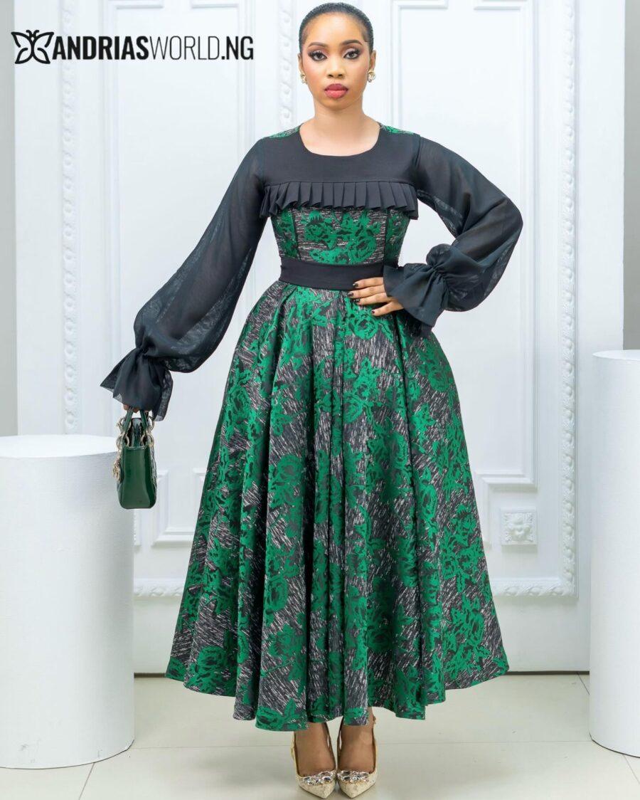 Black and Green Damask Skater Dress