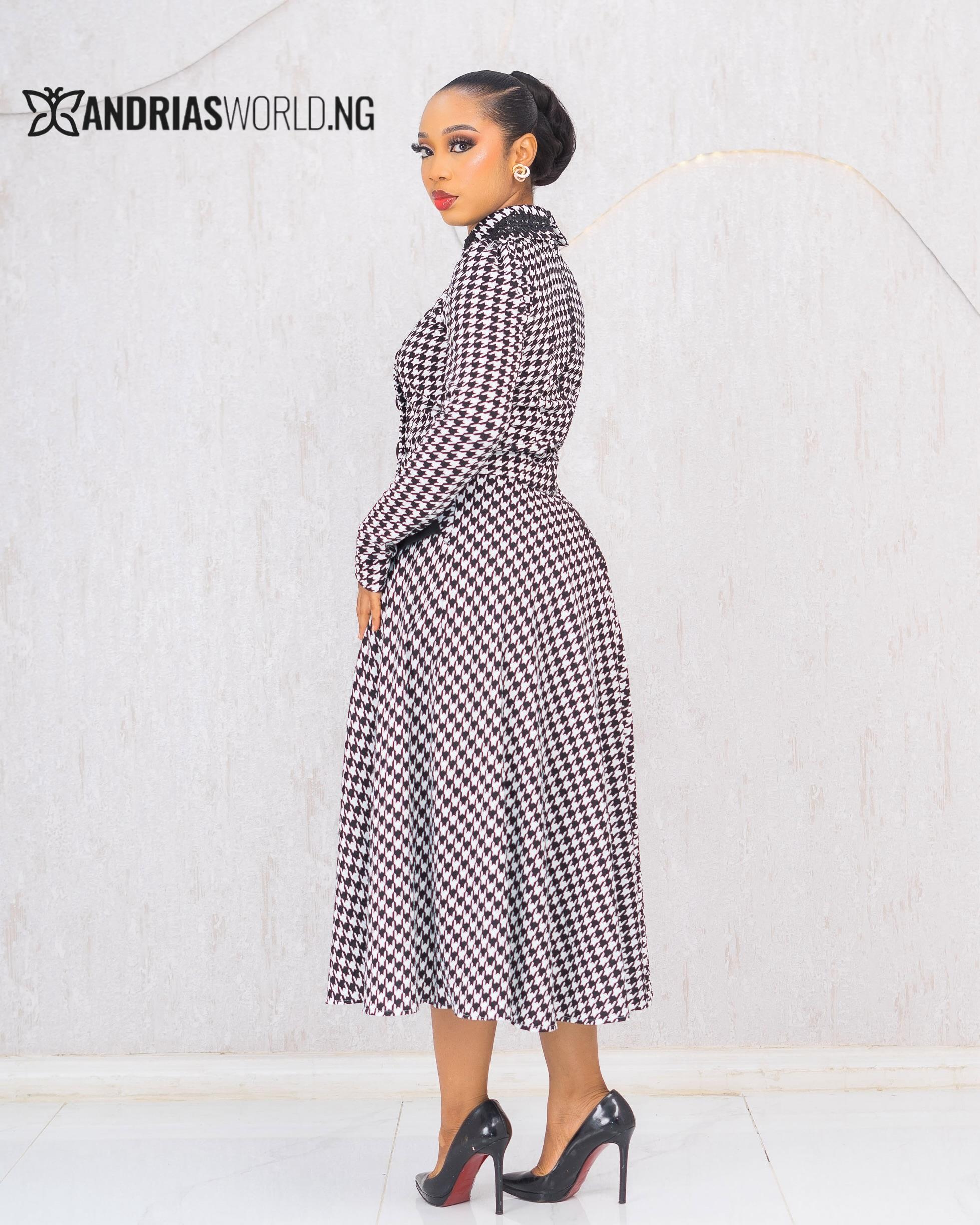 BLACK AND WHITE HOUNDSTOOTH SKIRT SET