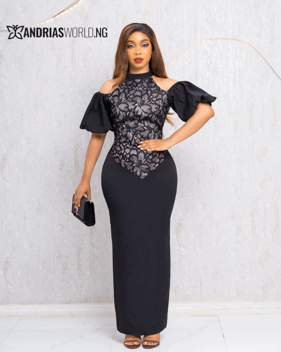 BLACK COLD SHOULDER DRESS WITH LACE
