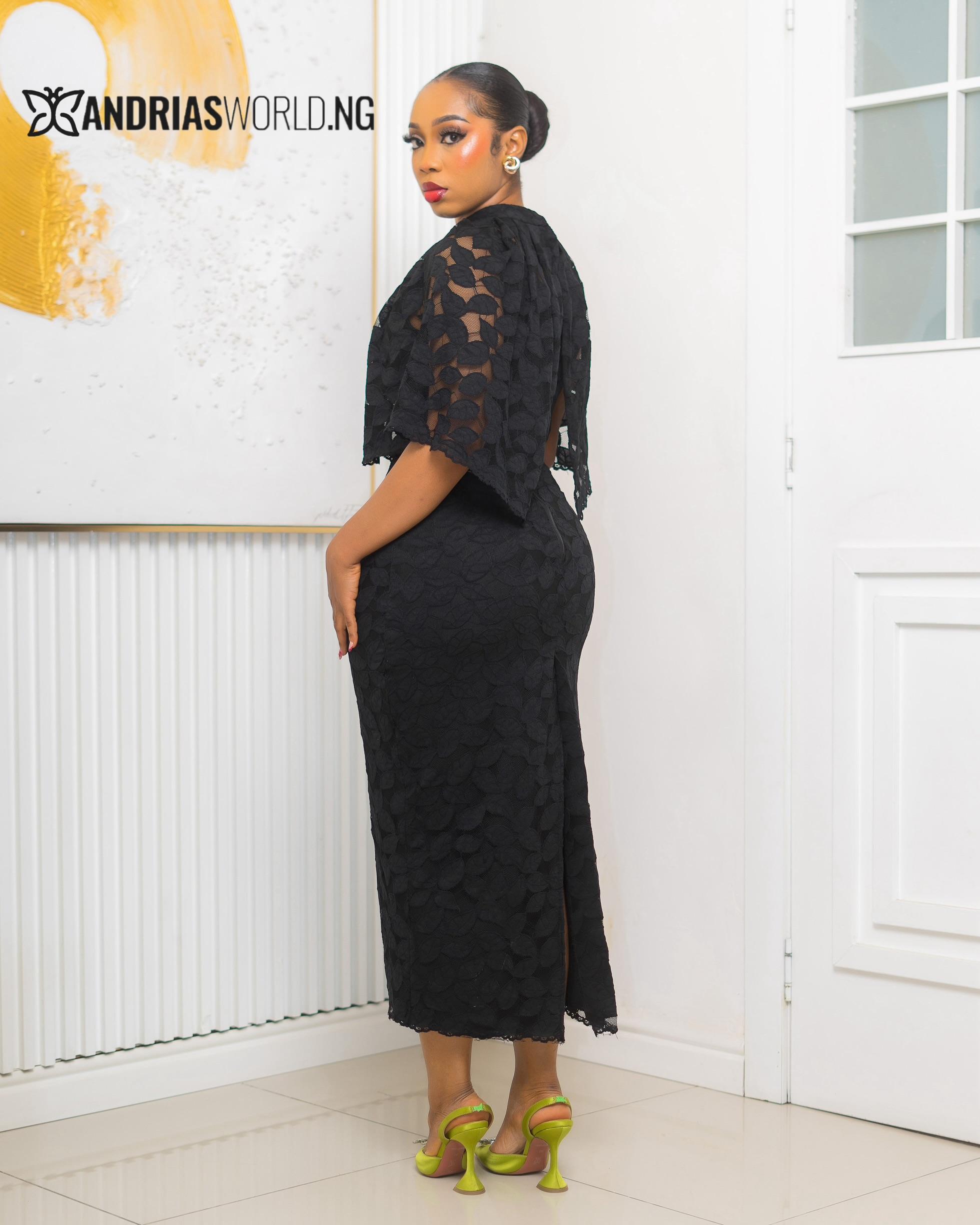 BLACK LACE DRESS WITH DETACHABLE CAPE
