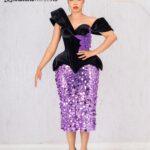 BLACK VELVET CORSET WITH PURPLE SEQUIN SKIRT