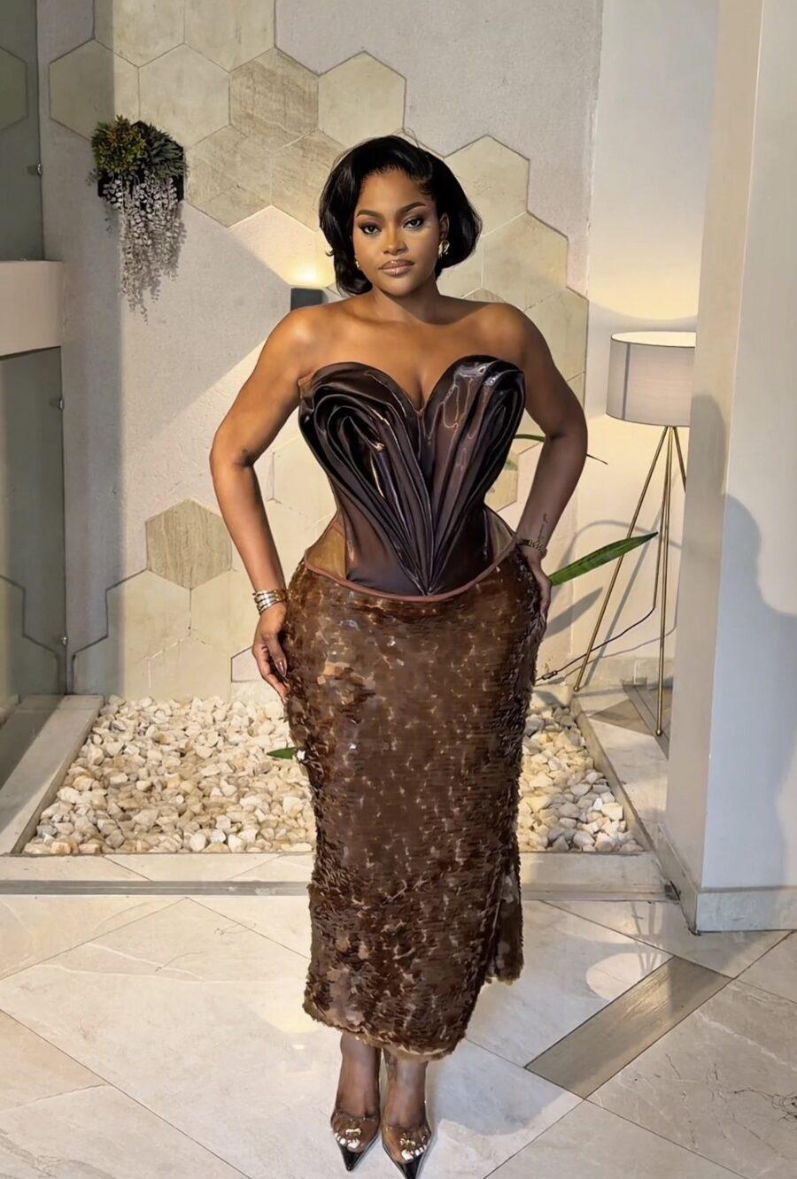 BROWN CORSET TOP WITH SEQUIN SKIRT
