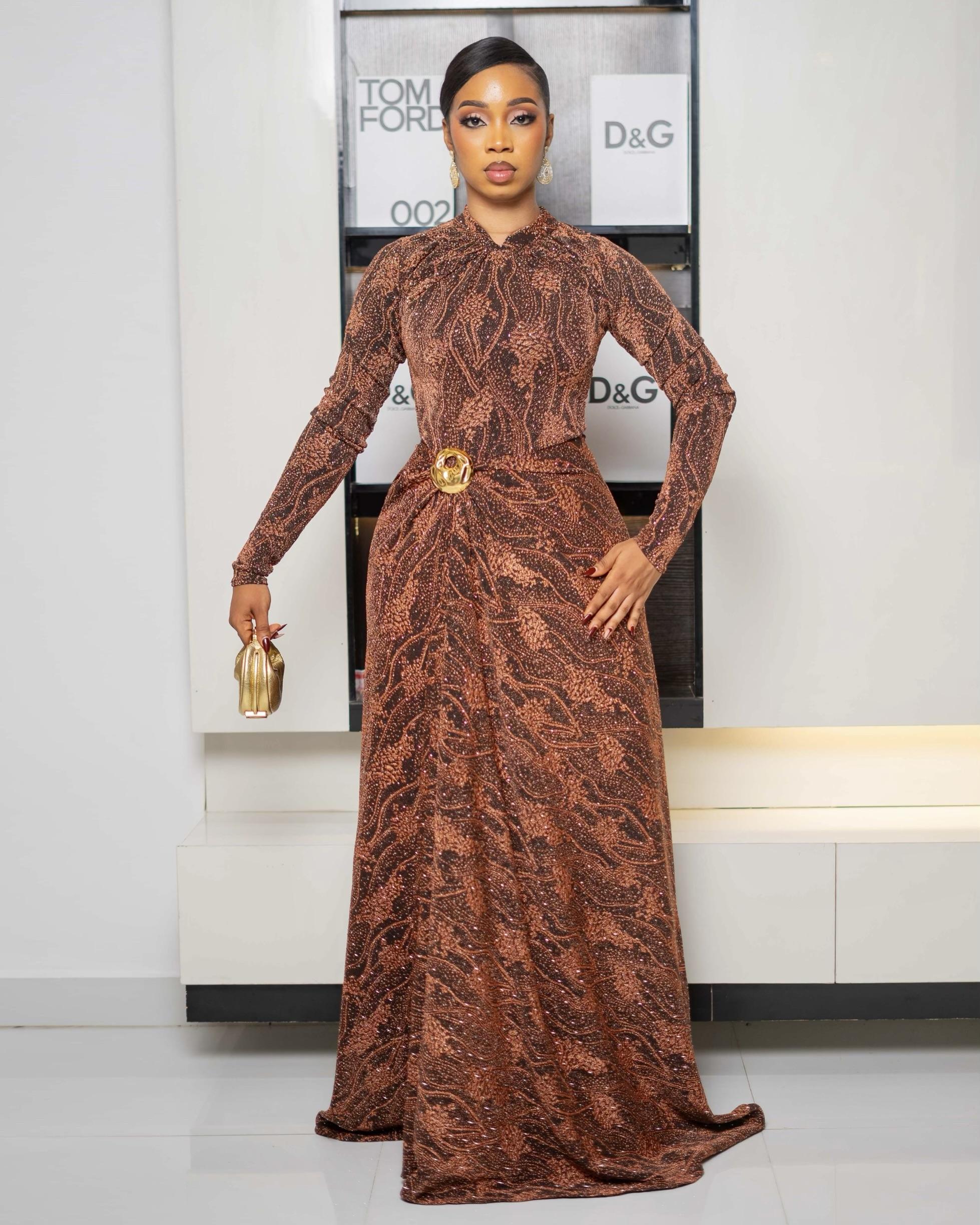 Peach Long Sleeve Maxi Dress