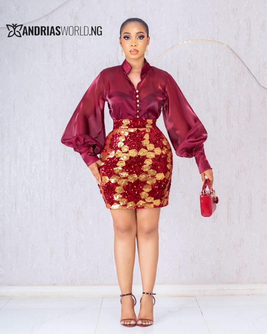 BURGUNDY TOP AND SEQUN SKIRT SET