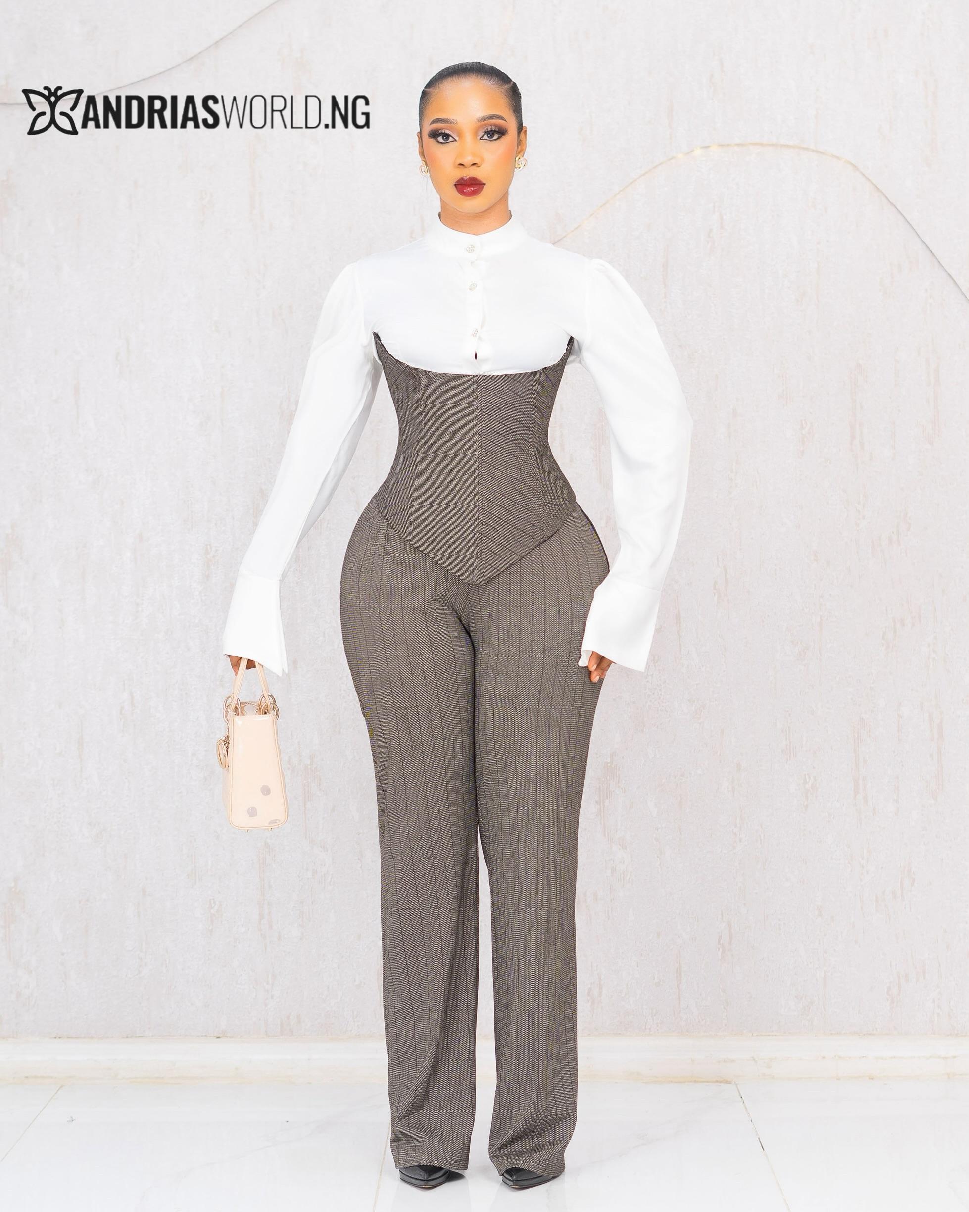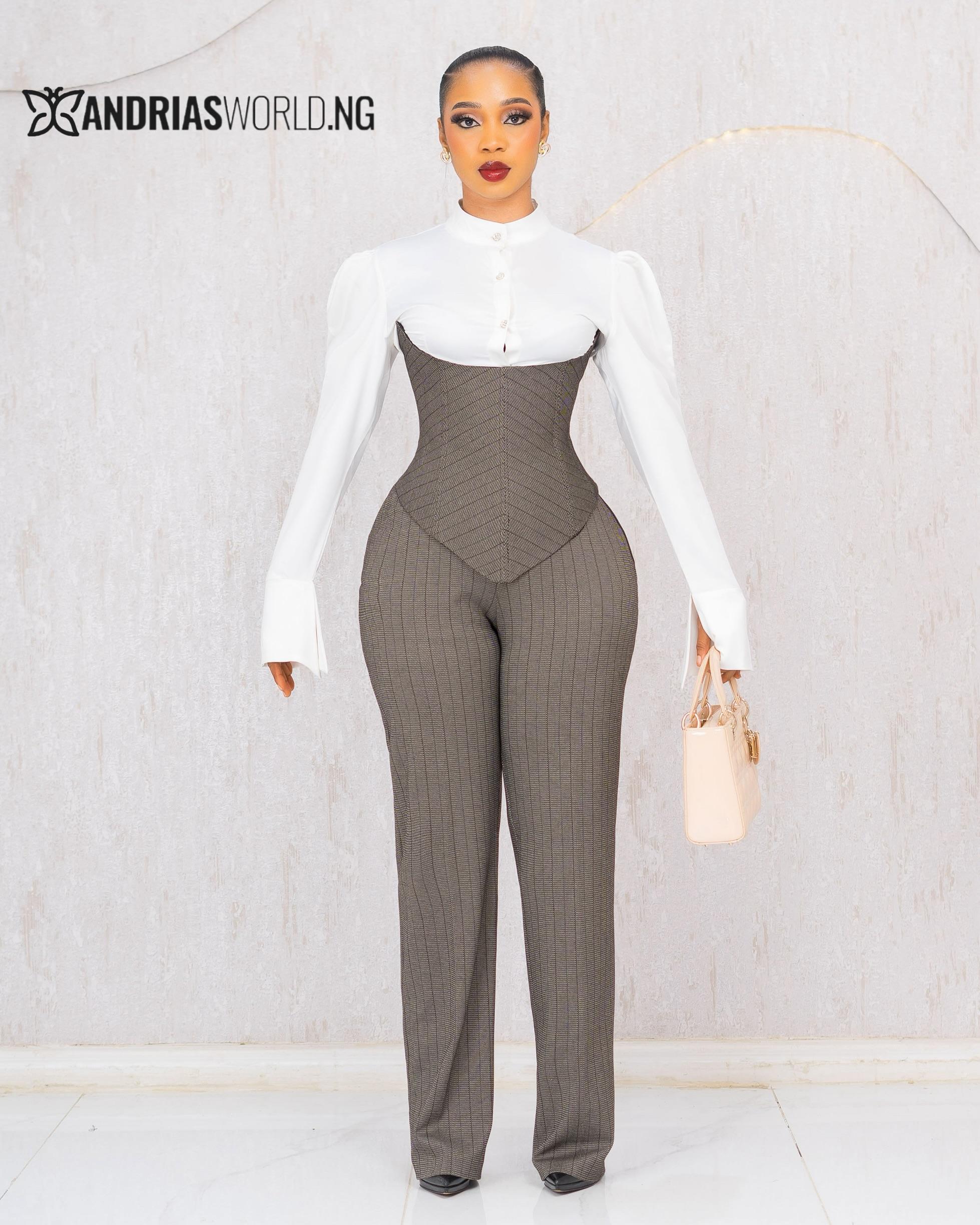 DARK GREY THREE PIECE CORSET TROUSER SET