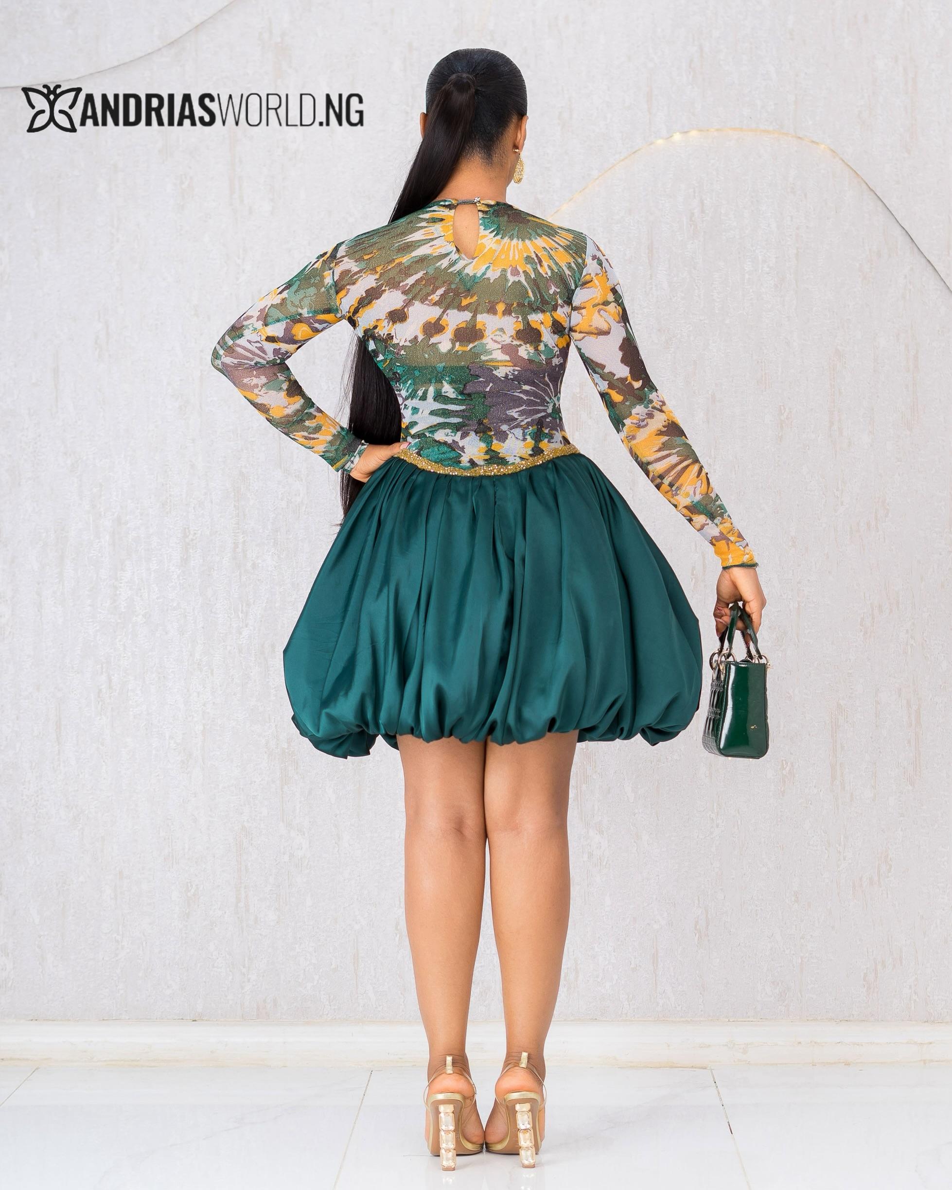 MULTICOLORED BEADED MESH & GREEN BUBBLE DRESS