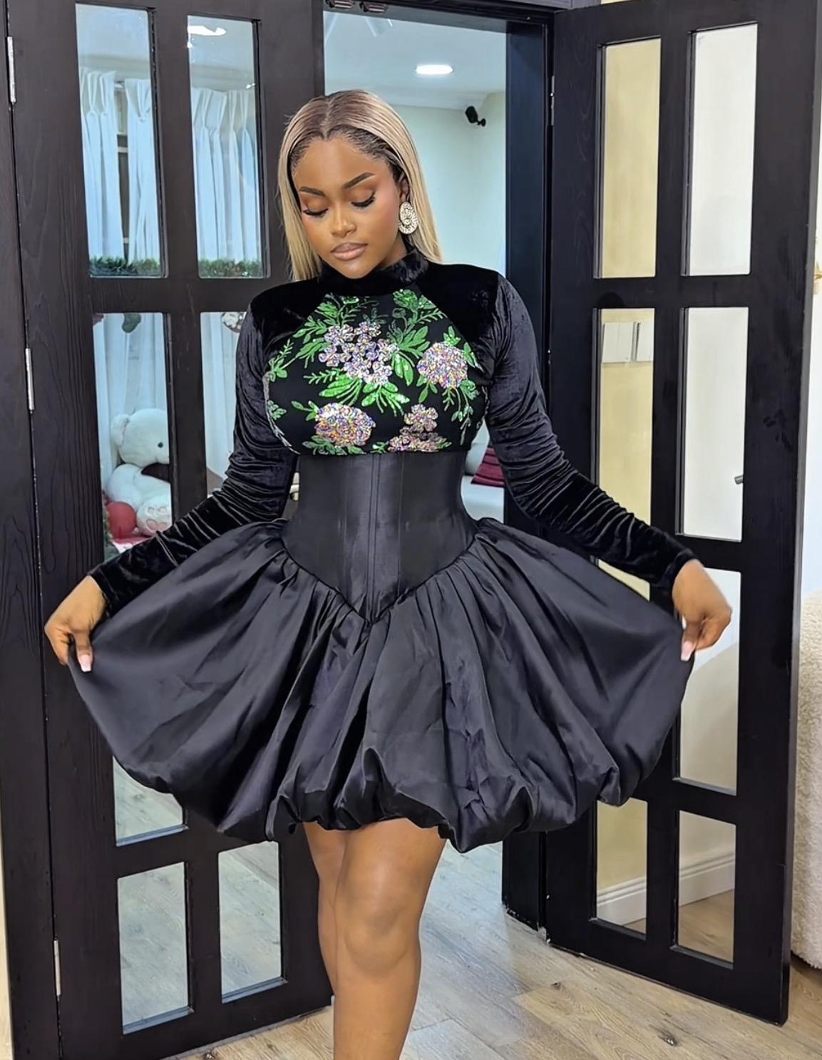 MULTICOLORED FLORAL CORSET BUBBLE DRESS