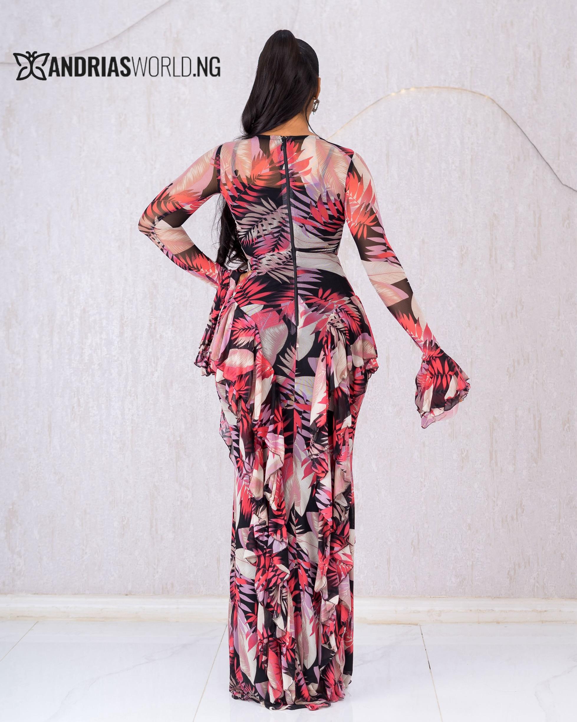 MULTICOLORED MESH DRESS WITH RUFFLES