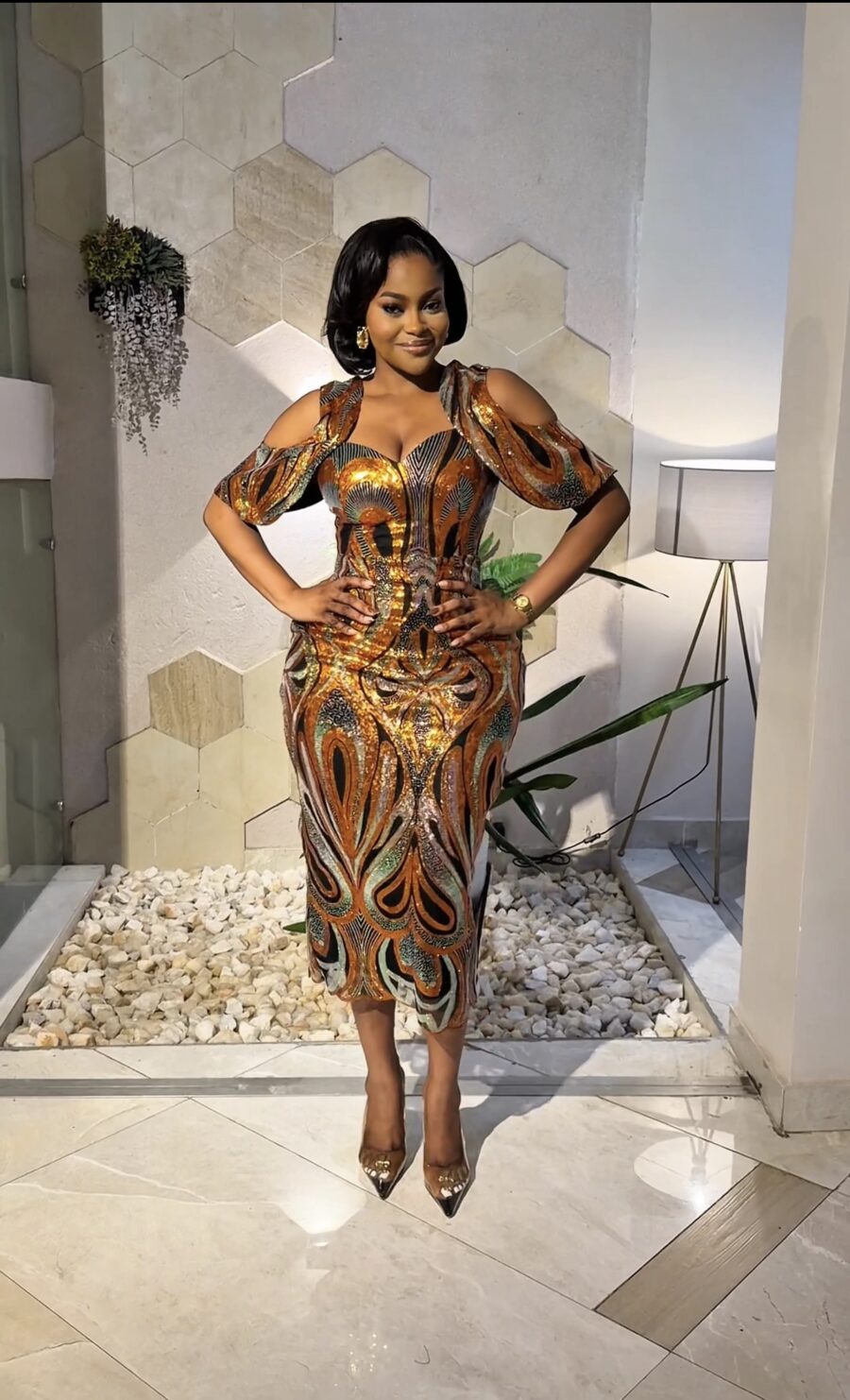 MULTICOLORED SEQUIN CORSET DRESS WITH CAPE
