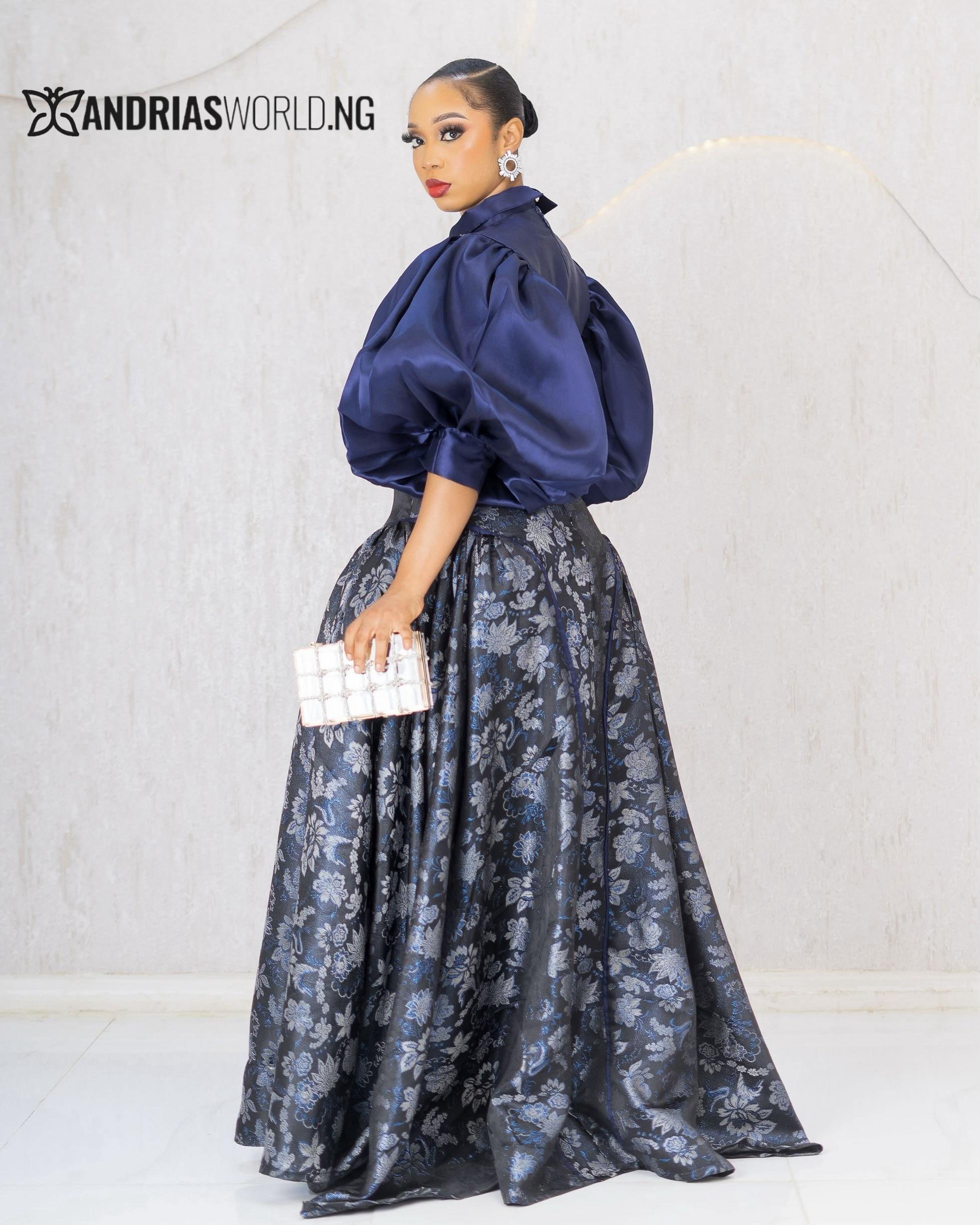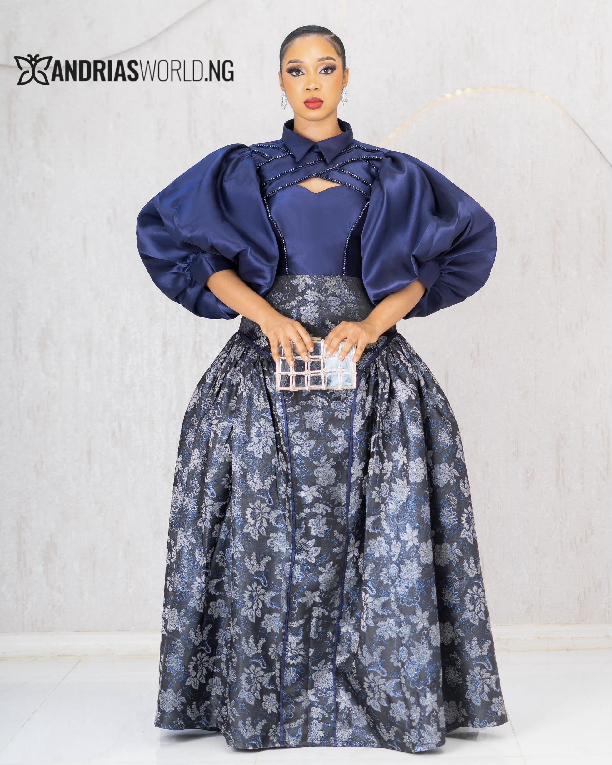 NAVYBLUE BEADED MIKADO DRESS WITH DAMASK FLORAL PRINT