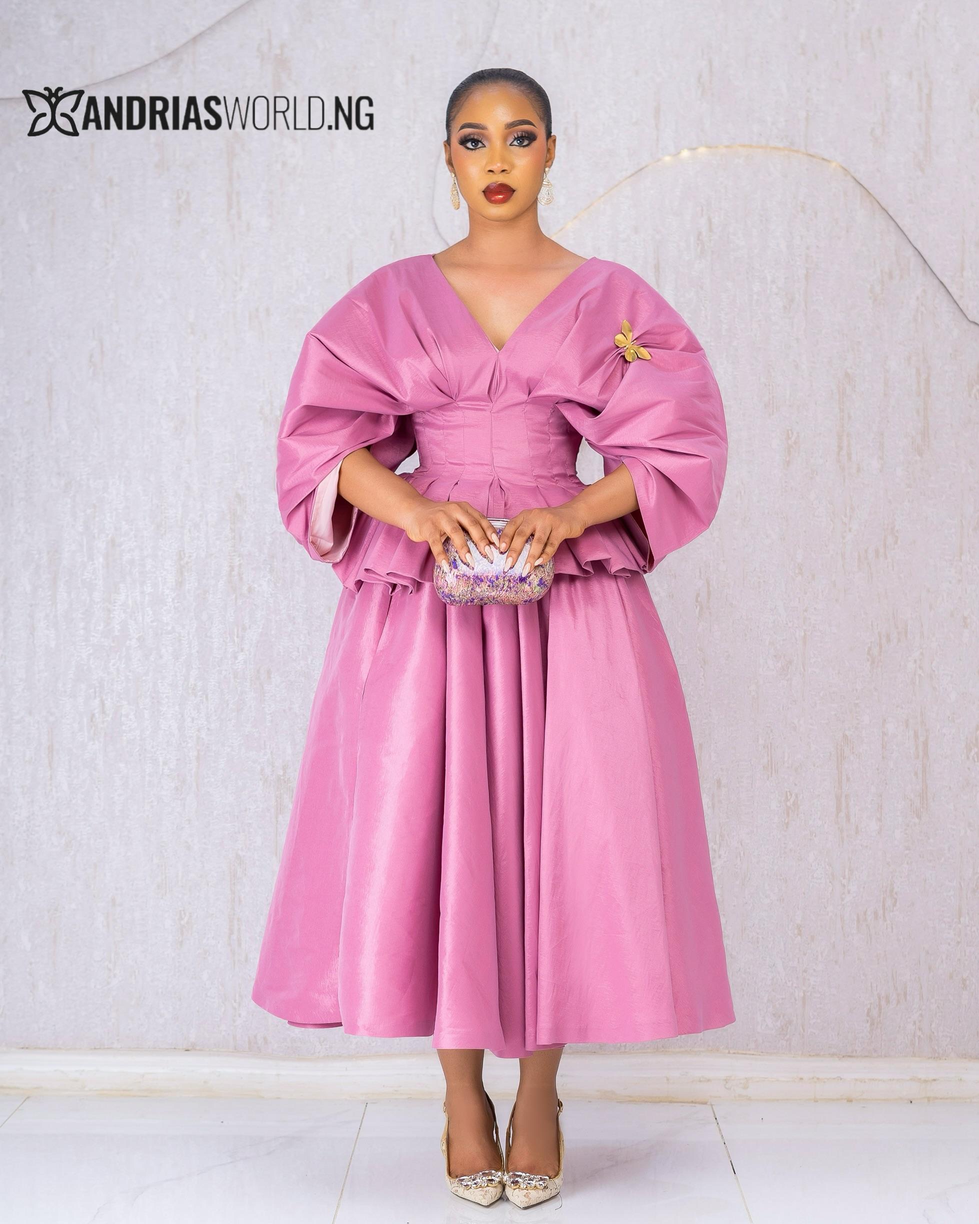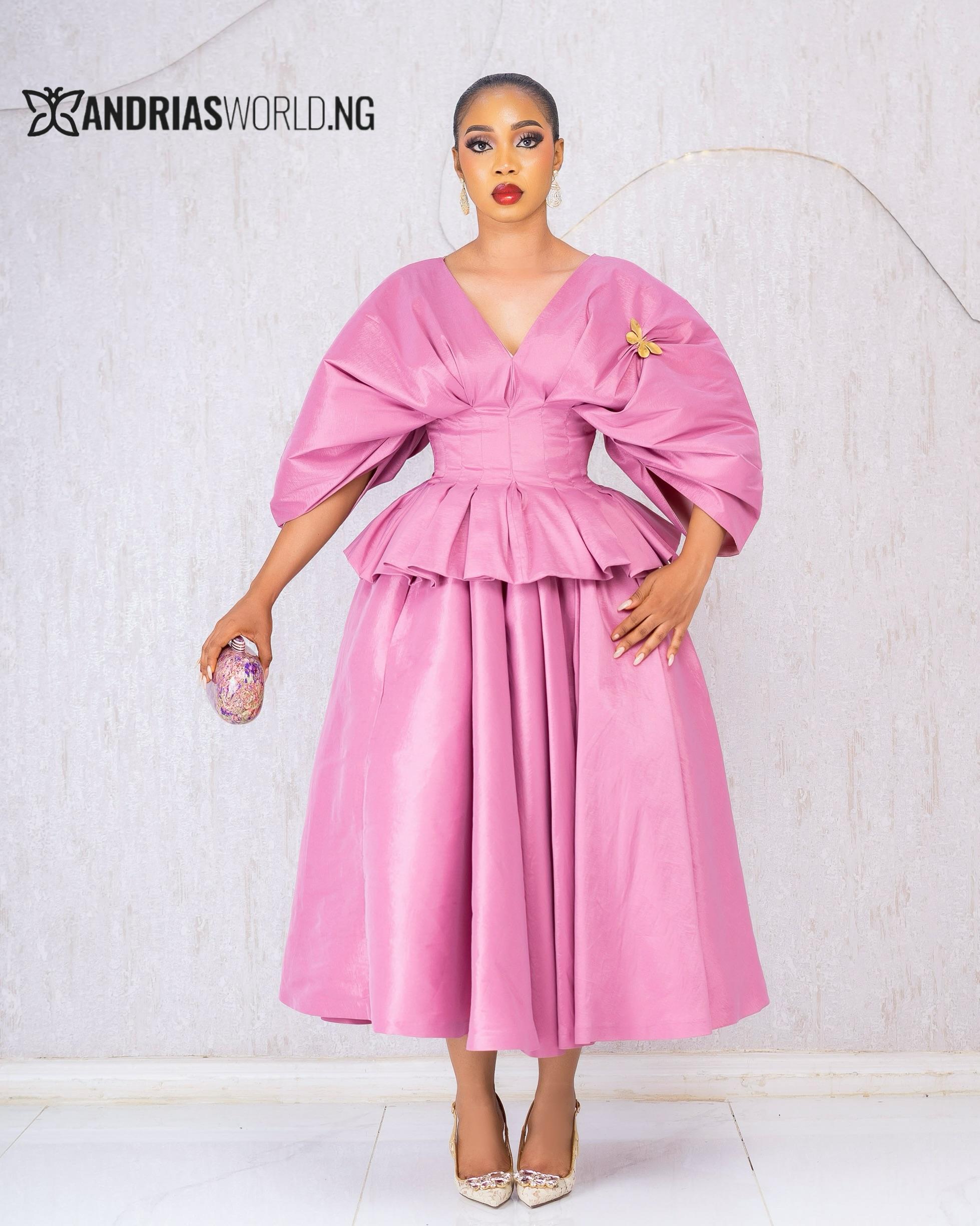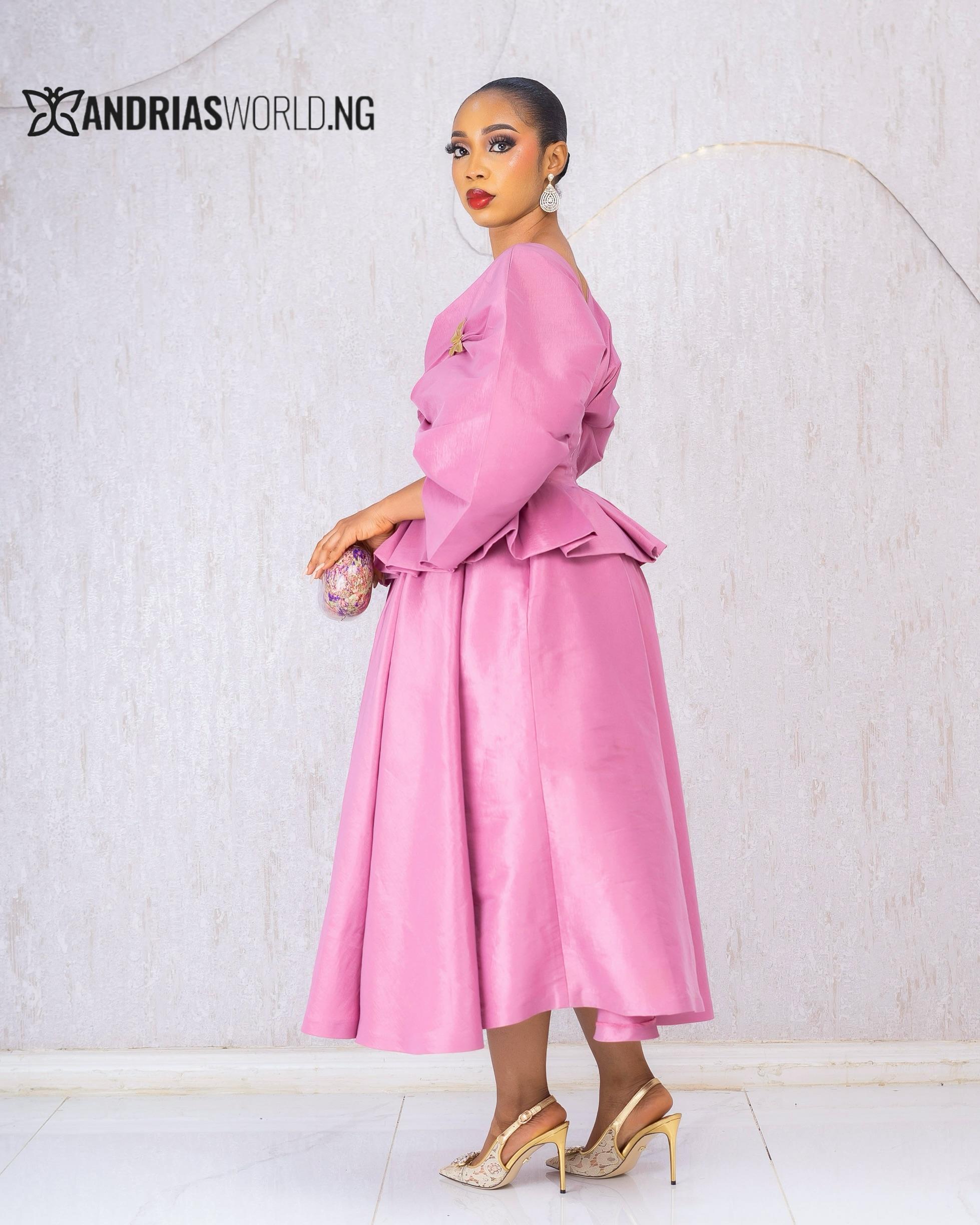 Peach Taffeta Peplum Skirt Set