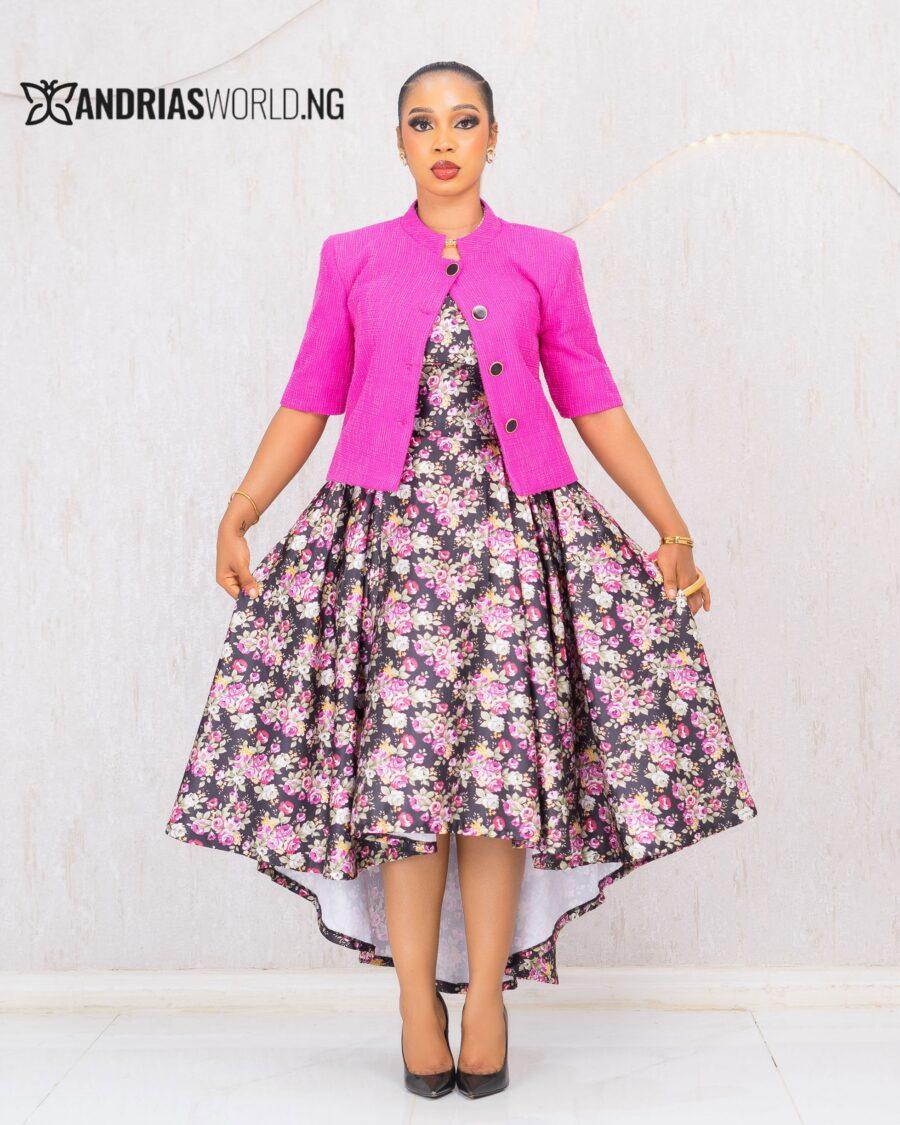 PINK AND BLACK FLORAL THREE PIECE SKIRT SET WITH TWEED JACKET