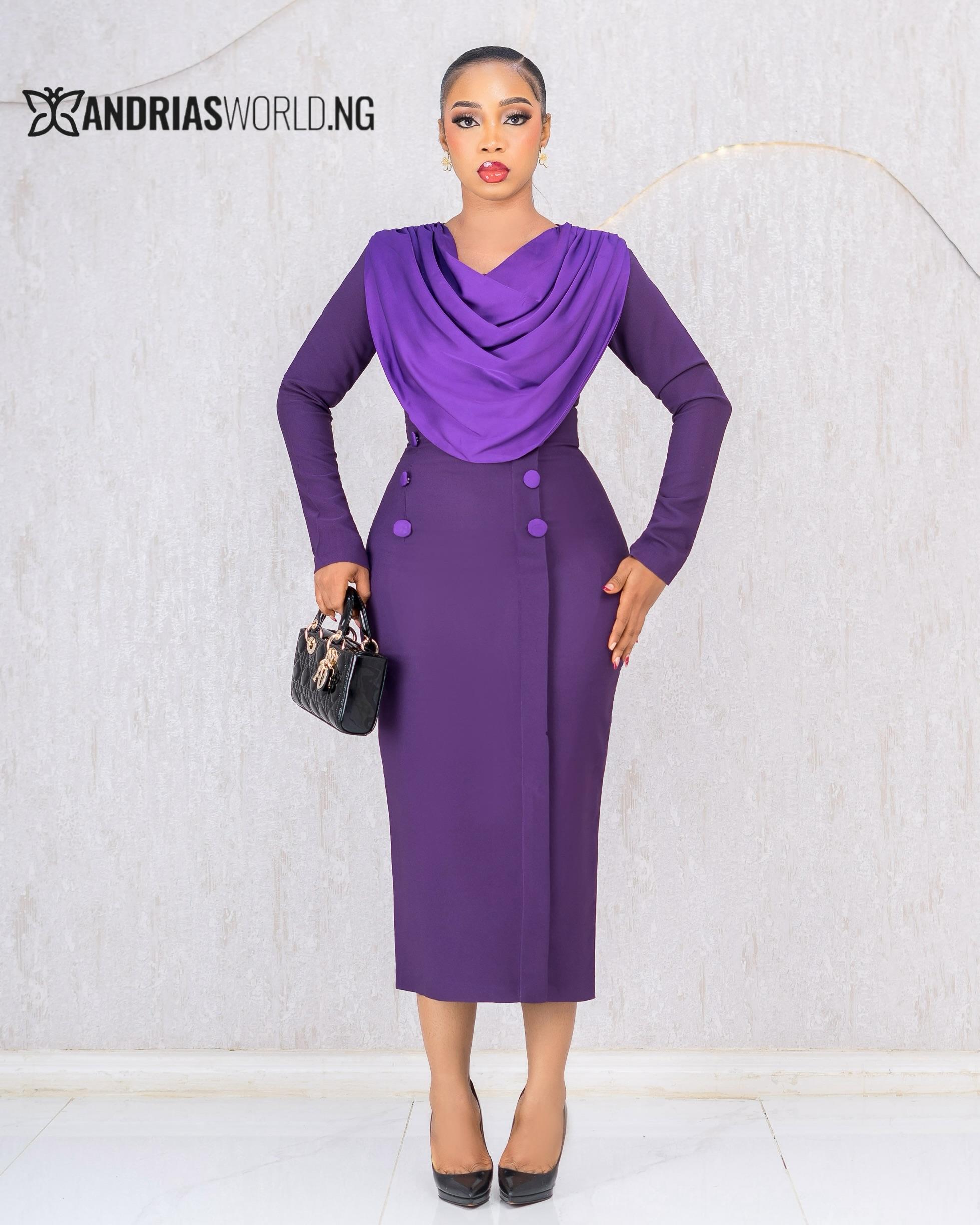 PURPLE MIDI COWL NECK DRESS