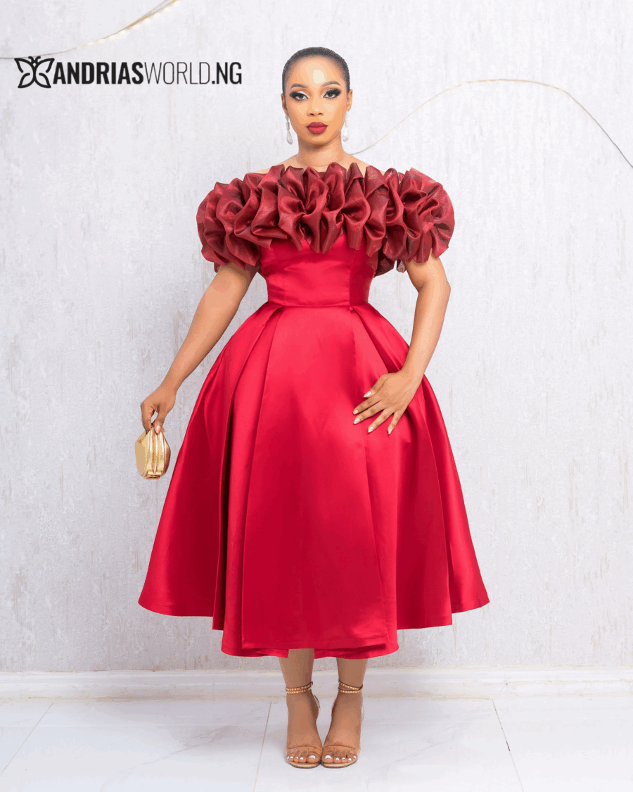 RED MIKADO SKATER DRESS WITH ORGANZA