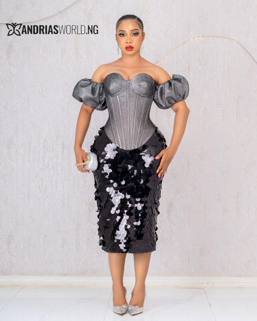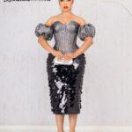 SILVER DAMASK CORSET TOP WITH SEQUIN SKIRT